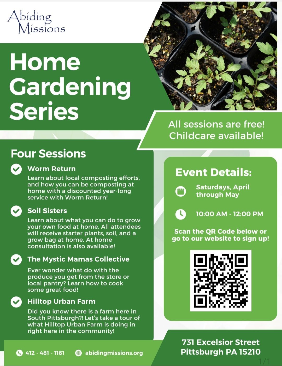 Starting April 11, 2026, join hands-on workshops led by local partners Worm Return, Soil Sisters, Mystic Mamas, and Hilltop Urban Farm! All sessions will be offered twice. These sessions cover composting, sustainable gardening, and home-based food production, providing valuable knowledge for sustainable living. Childcare is available for all participants.