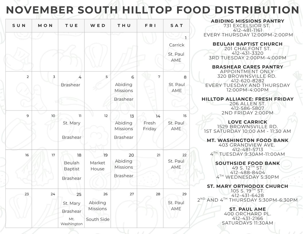 Here is a schedule for South Hilltop food distributions in November!