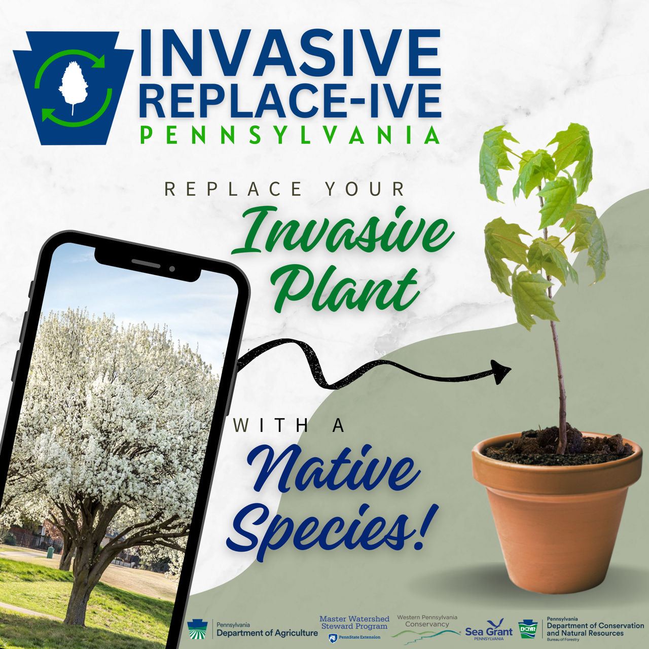 The Pennsylvania Invasive Replace-ive Program offers property owners the opportunity to receive free native trees and shrubs by removing one or more invasive plants from their yard, garden, or landscape.